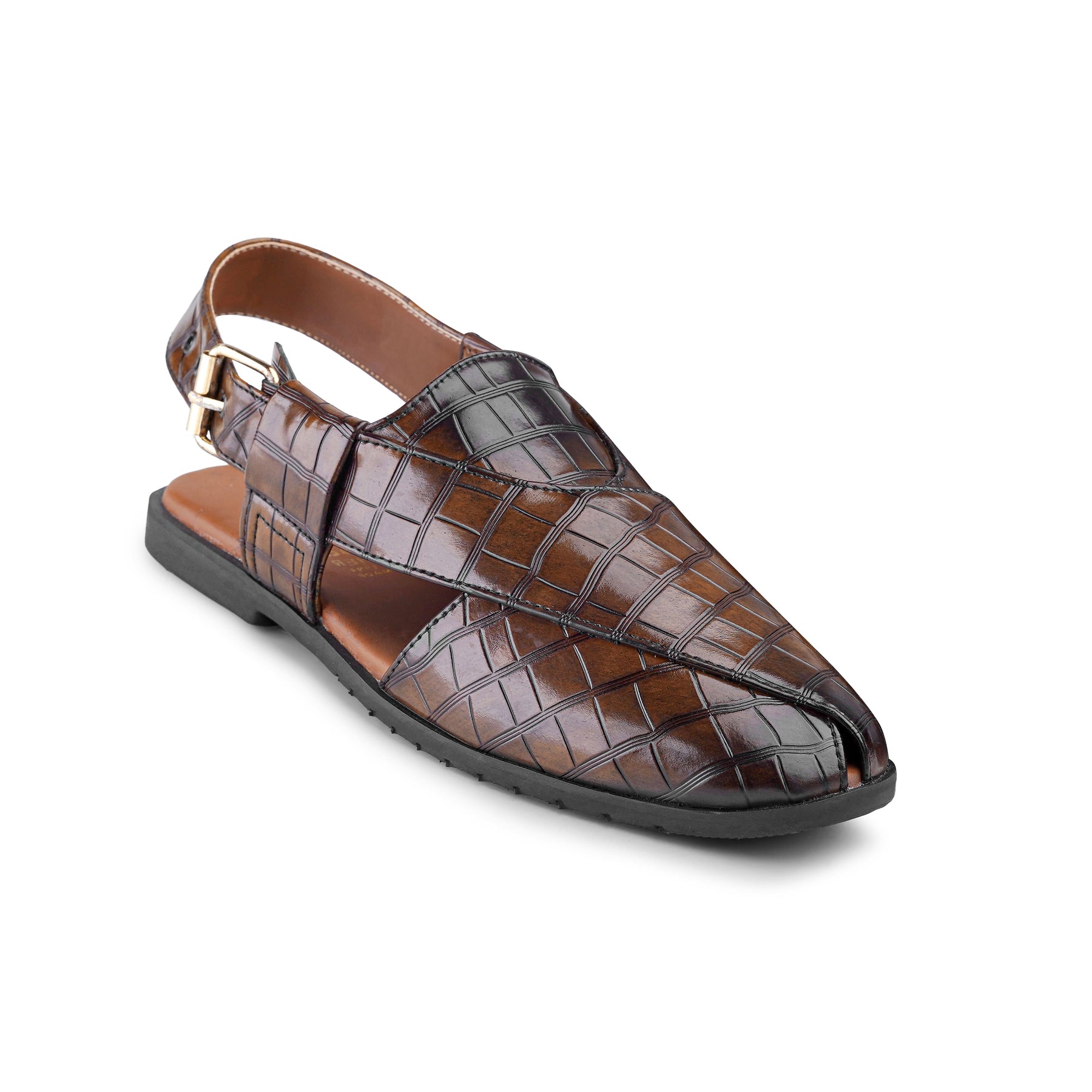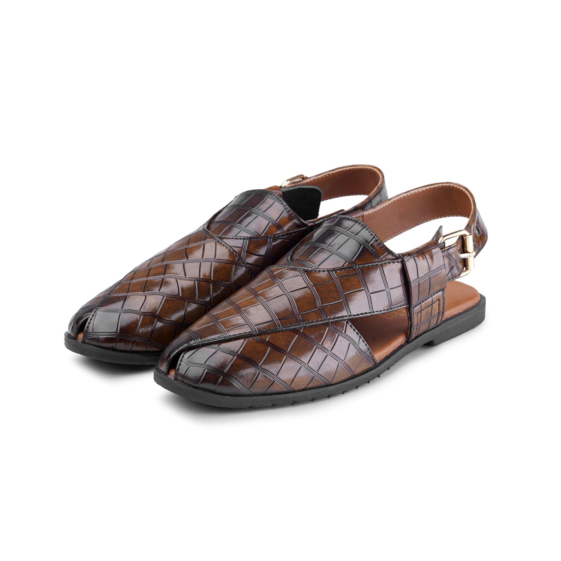 Croc‑Embossed Two‑Tone Peshawari Chappal